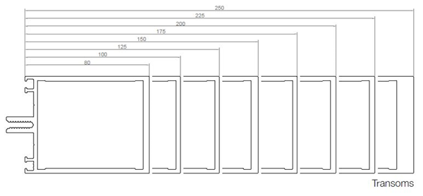 Transoms from 80mm to 250mm (80, 100, 125, 150, 175, 200, 225, 250)