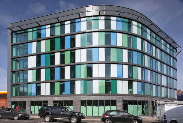 Meanwhile, Blue and green infill panels specified at London Court Apartments in Sheffield give this modern block of student accommodation a striking façade.