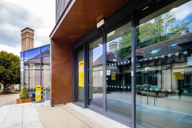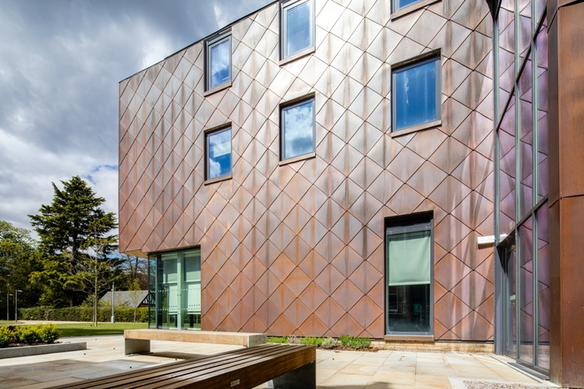 To create visual impact the three gable ends on the new extension were staggered and the whole building was wrapped in copper cladding. Senior’s slim profile SF52 thermal enhanced curtain walling and SPW600 Windows were used extensively throughout the extension to create a light and airy interior and a comfortable environment in which to study. For the main entrances, Senior’s robust SPW501 Commercial Doors were specified, to provide both security and longevity for these high traffic areas.