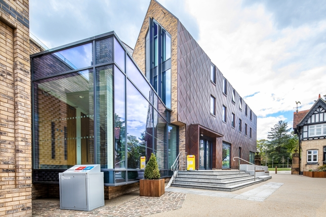 The job of architects at Shepheard Epstein Hunter, was to deliver the £15.8 Million plan to sympathetically refurbish and selectively remodel Brookfield House to bring it back to its former glory, demolish the mid-20th Century extension to the Victorian property and build a more architecturally sympathetic gabled 3 story extension using materials carefully chosen to complement the existing structure. The plan also included the building of an elliptical lecture theatre plus a new main reception and restoration of the stable block and courtyard area using traditional materials.