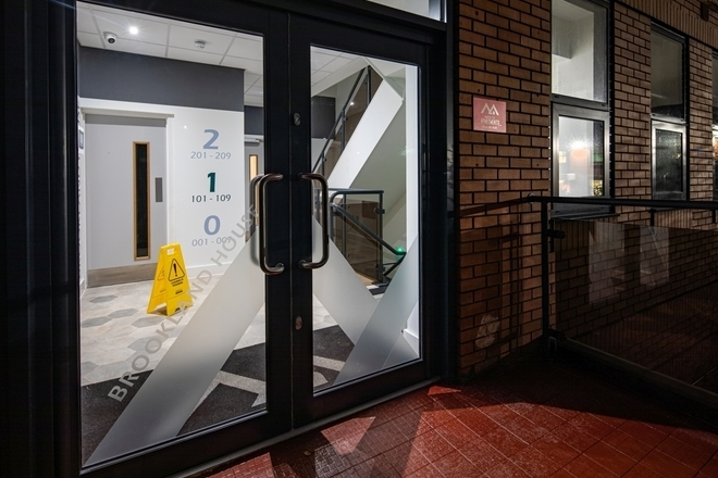 Formerly a neglected office block, Brookland House now provides 25 contemporary eco-friendly apartments. Located close to Salford University, and Salford Quay which is now home to Media City, they are perfect for both students and professionals who want high-spec living, away from the hustle and bustle of Manchester City Centre.