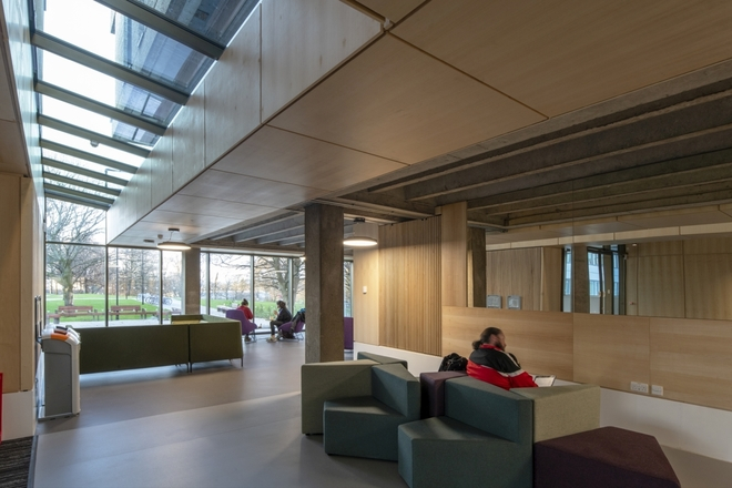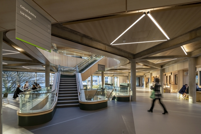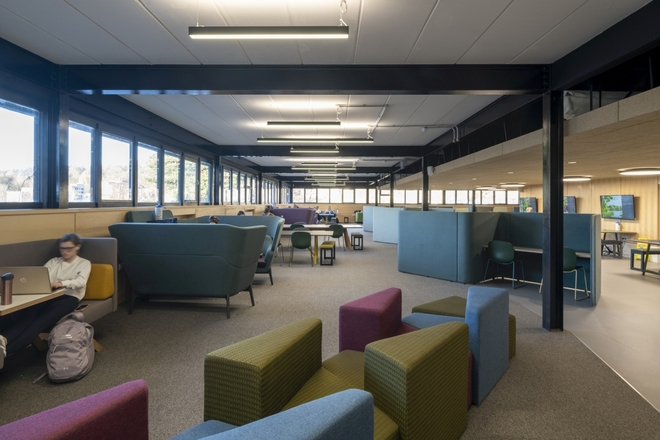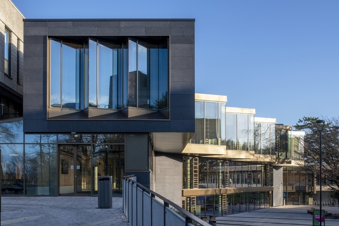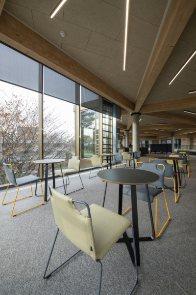 The new building is now home to the Student Services Hub, the box office for the Macrobert Arts Centre, a vibrant cultural hub, and the Institute for Advanced Studies. In addition, there is an increased amount of study and flexible, digitally connected social spaces, plus cafés and a handy Co-op store, to meet the needs of the University’s growing community.
