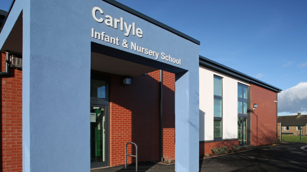 Carlyle Infant School is one of 15 new schools rebuilt under the EFA’s Priority School Building Programme. The contract for the 15 schools worth around £60 Million was awarded to main contractor Bowmer and Kirkland.