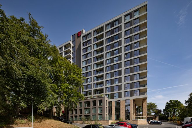 Located in the heart of Sheffield, Hallam Towers is a landmark residential development that combines contemporary design with a rich architectural legacy. The 15-storey tower has been built on the site of the former Hallam Tower Hotel, which first opened in 1965 and was a prominent feature of the city until its closure and demolition in 2017. The new development has sympathetically reimagined the original structure, retaining its iconic silhouette while creating a modern residential setting.