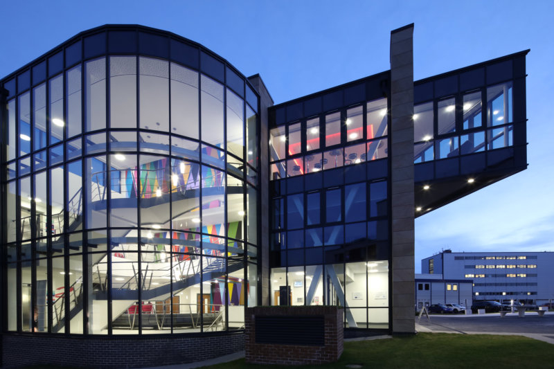 Installation of attractive brise soleil shading to the southern entrance helped to minimise solar gain, providing a comfortable internal working environment whilst complementing the building’s striking glazed façade.