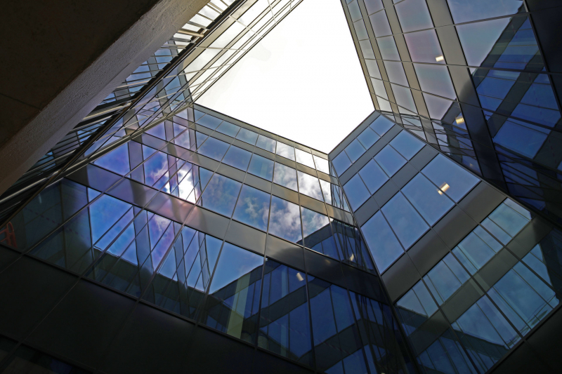 A key feature of the scheme is the striking facetted facade of the main building which has been created using Senior’s popular SF52 aluminium curtain walling system. Owing to the faceting of the curtain wall frames and the irregular formation of the mullions and transoms, each aluminium bar had to be manually drawn to enable them to be accurately fabricated by Elite Aluminium Systems.