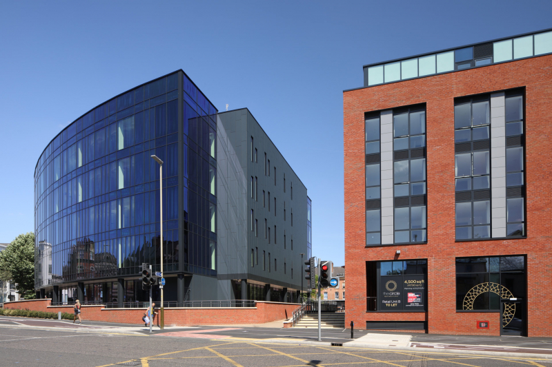 Designed by Franklin Ellis Architects, the building features 50,000 sq. ft. of high-quality glass-fronted office space, 54 residential apartments, two bars and restaurant units together with new ground floor retail space.
