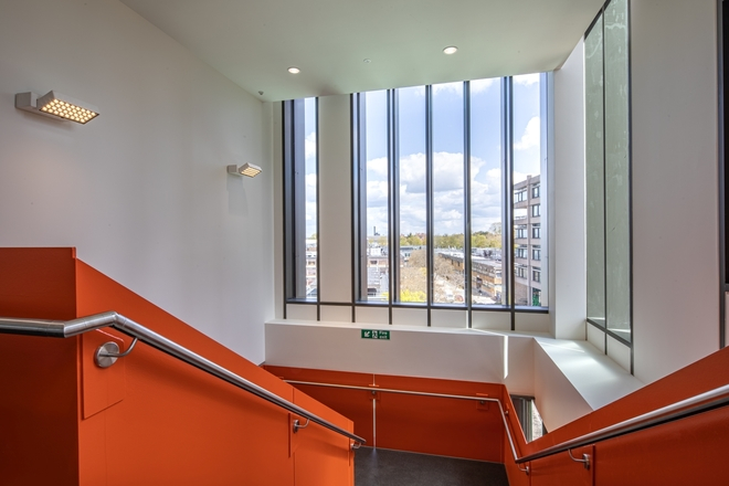 Created using Senior’s SF52 silicon glazed and fully capped curtain walling, with PURe® aluminium opening vents, the façade gives a light and spacious feeling to all four floors. With such a large expanse of glazing, thermal efficiency was a key consideration which was delivered thanks to the enhanced thermal efficiency of SF52 and the PURe® thermal break in the innovative patented PURe® windows giving incredibly low U values.