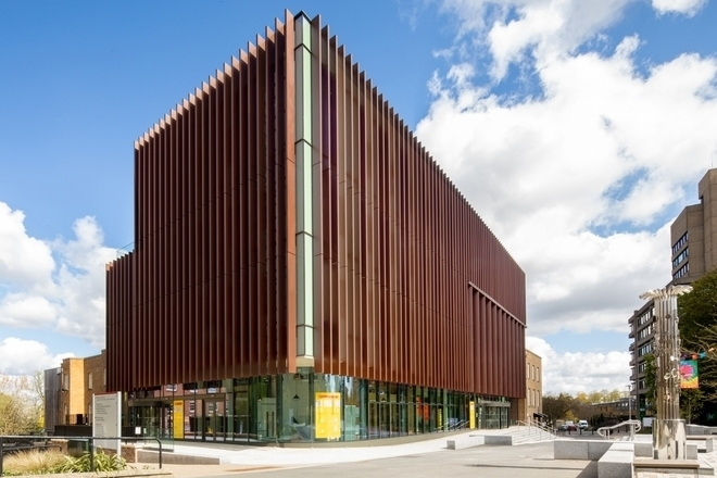 The Percy Gee Building, situated in the heart of the University of Leicester’s campus, is home to the Students’ Union. After designing a spectacular award-winning transformation for most of the Percy Gee Building in 2010, architects at Shepheard Epstein Hunter were determined to come up with an equally impressive design for development of the remaining East Wing.