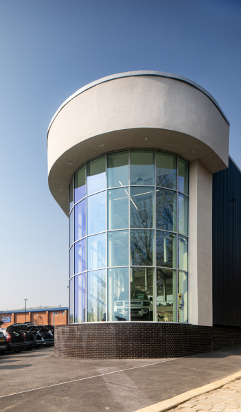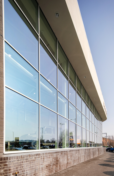 The flexibility of the SF52 curtain wall system has brought the vision of architects The Harris Partnership to life, from the crisp lines of the showroom’s entrance to the smooth curve of the main façade. The eye-catching building boasts a prime location on the approach to the city centre, with the slim sightlines of the curtain wall highlighting the cars on display and offering panoramic views of the surrounding areas for the enjoyment of staff and customers within.