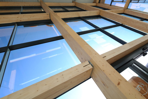 The new Sainsbury’s Eco store designed by Sheffield architects Hadfield Cawkwell Davidson, was built by main contractors Barr Construction (now McLaughlin & Harvey) and is the retail giant’s first store to feature a steel and timber construction. A steel frame from the ground up to the sales floor and a timber frame to the ceiling with timber cassettes completing the roof helped to speed up the construction as well as reduce the carbon footprint of the store.