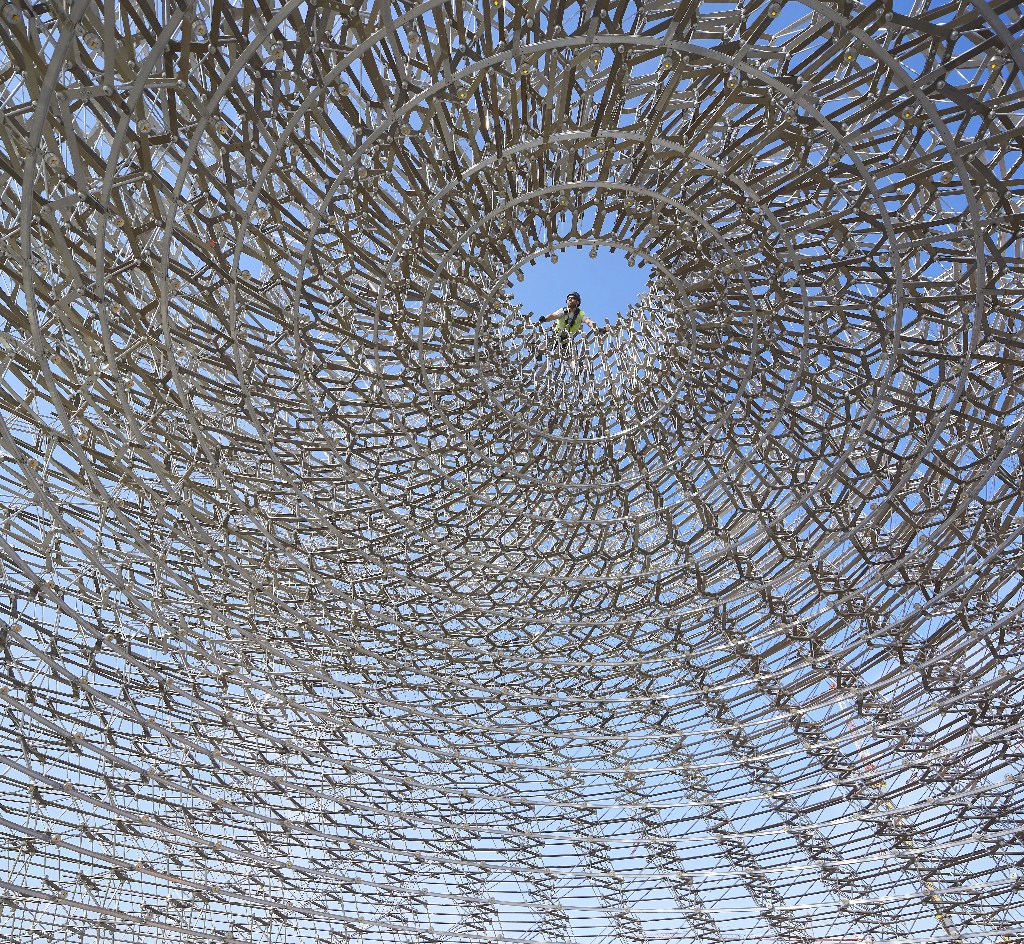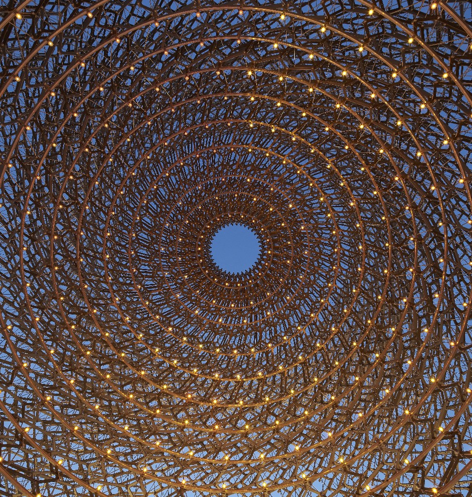The winning design by Nottingham artist Wolfgang Buttress, announced by Prince Harry in Rome, was based on the Expo’s theme of ‘Feeding the Planet, Energy for Life’ and featured a virtual beehive made of fine steel lattice, with LEDs which glowed and pulsated according to signals from a real beehive in the UK.