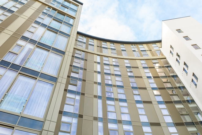 Floor to ceiling glazing using SF52 aluminium curtain walling and SPW600 aluminium windows gives a light and spacious feel throughout. In addition, for the apartments, the installation of PURe® SLIDE doors leading to Juliet balconies provides natural ventilation when open and exceptional thermal performance to maintain a comfortable living environment when closed.