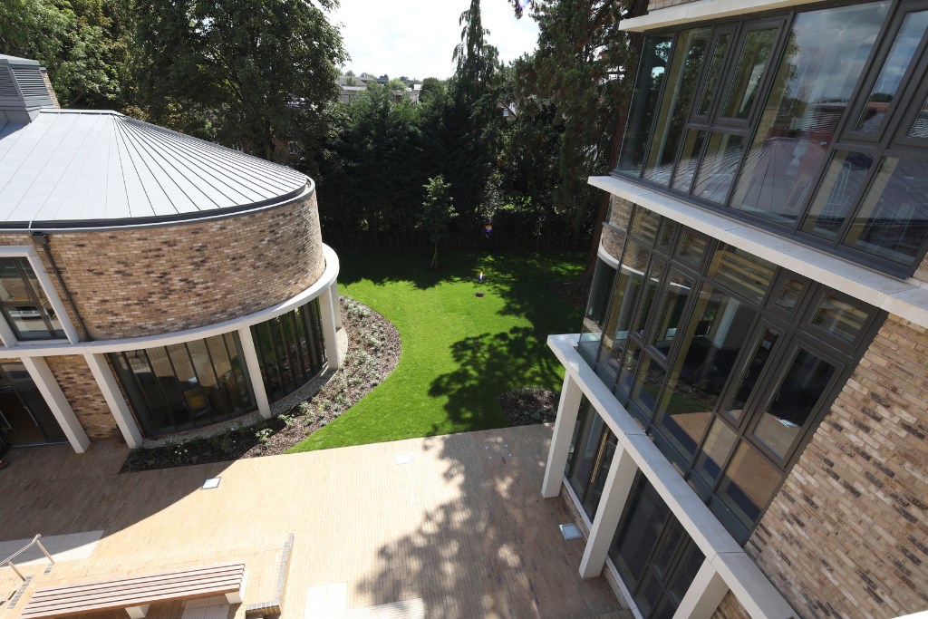 Senior’s Hybrid curtain wall and windows were also installed to the college’s new hall that is adjacent to the main building and which provides dining facilities and a 180-seat auditorium for performance and events. A key challenge, and one which illustrates both Soundcraft’s skill as an installer and the design flexibility of Senior’s Hybrid range, was the creation of the hall’s curved elevation that features a complex faceted curtain wall screen.