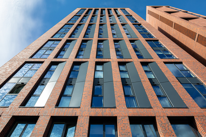 With high rise schemes being popular in the student accommodation sector, private rental residential market and many commercial office schemes, thermally efficient aluminium windows can tick yet another box in terms of acoustic performance. With such schemes often developed in central locations close to transport links and local amenities, it’s vital to ensure that external noise doesn’t disturb the building’s users and any noise breakout from within is minimised. As well as helping to reduce heat loss, the thermal break in aluminium windows can also help to limit sound pollution but some systems will be more effective at sound proofing than others. Developed to not only meet but exceed the new U-value targets outlined by Part L of the Building Regulations, the unique construction of our PURe® aluminium window also makes it exceptionally good at limiting the transmission of sound waves as unlike other systems, its expanded polyurethane (PUR) foam thermal break fills the entire cavity between the internal and external aluminium profiles.