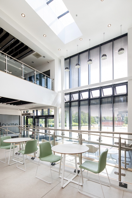 The impressive building has been designed by architects Pick Everard and incorporates a number of sustainable features to achieve an ‘excellent’ BREEAM rating. Senior’s fenestration systems, which offer cradle-to-cradle recyclability, were the ideal choice and the building’s striking main façade features both Senior’s thermally-enhanced SF52 aluminium curtain wall system and integrated SPW600 aluminium windows. Senior’s products were fabricated and installed by supply chain partner Logic Aluminium Systems for main contractor Henry Brothers Ltd.