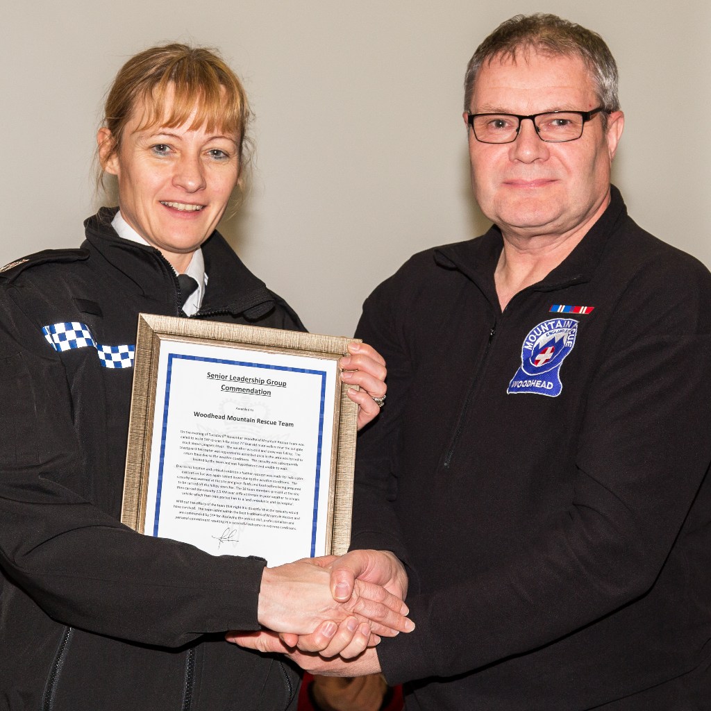 John Halstead receiving the Commendation from South Yorkshire Police on behalf of Woodhead Mountain Rescue Team