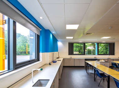 Having already been installed on various education projects across the UK, Senior’s patented low U-value PURe® aluminium window system offers exceptional thermal performance and enables greater choice in the positioning of radiators. By preventing cold air from entering the room, the use of the PURe® system means radiators can be moved from their conventional position underneath the window to free up valuable floor and wall space and provide greater flexibility in terms of arranging furniture and planning interior layouts.