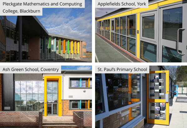 Other examples include Applefields School York, Ash Green School, Coventry and St. Paul’s Primary School which features Senior’s SPW501 commercial doors in bright primary colours.